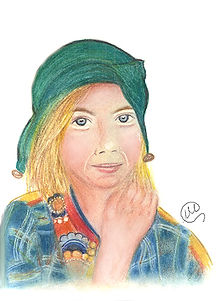 Dolly was the sweet and happy child model of Australian Akubra hats when she was about 6 (as in the drawing). At 14 she decided to leave this world because of relentless bullying.